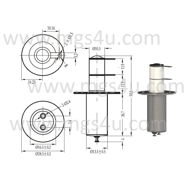 | Mounting | With small diameter flange for mounting through hole in chassis. An appropriately sized rubber grommet or adhesive could be utilized. |