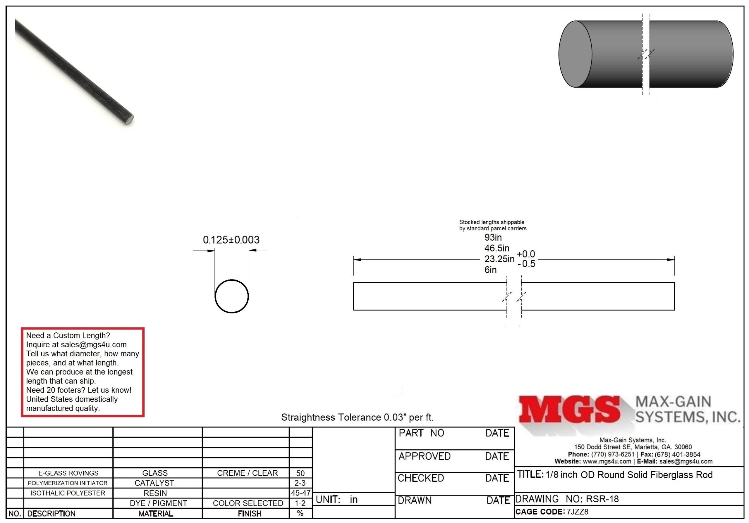 MGS Fiberglass Sizes that sleeve 1/8″ OD Round Solid Rod: