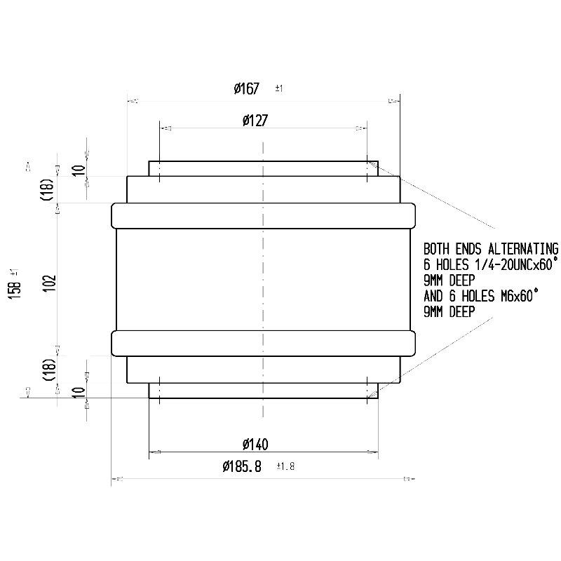 | Twelve drilled and tapped holes for front and rear end mounting | |
