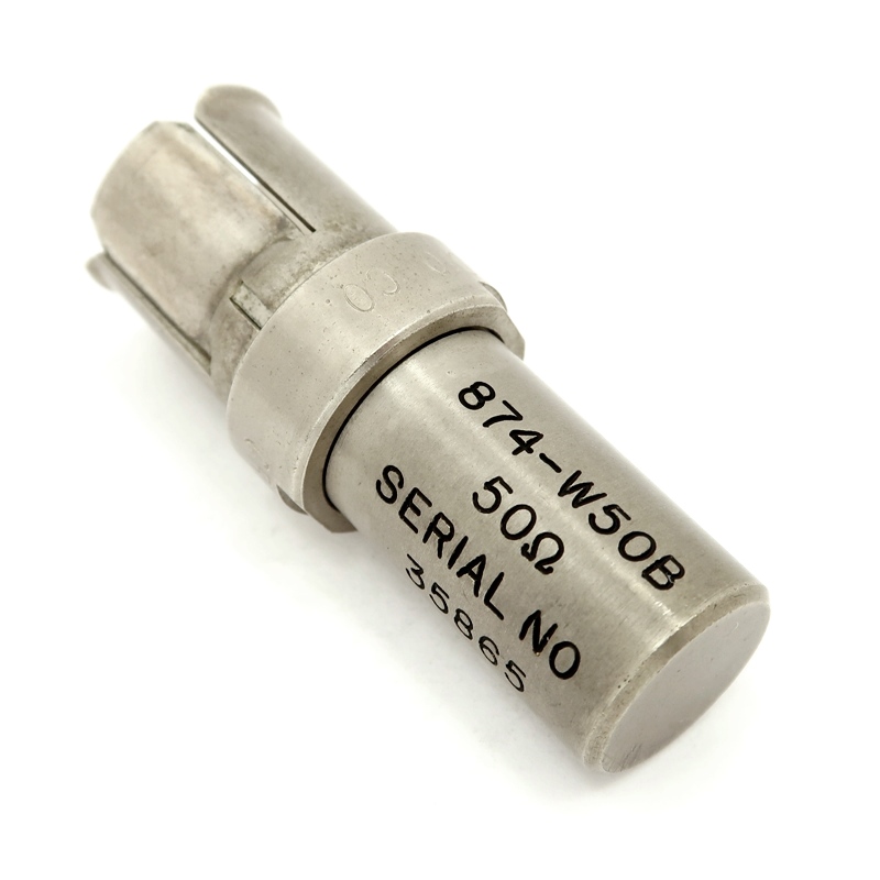 Resistive terminations are useful in slotted-line measurements and for checking accuracy of network analyzers, directional couplers, bridges, and admittance meters. The known location of a purely resistive termination permits the production of many known complex impedances through the addition of sections of 874-L Air Line, fixed or adjustable. 50 OHM impedance, non-locking GR-874 connectors. Sourced from military surplus lots.