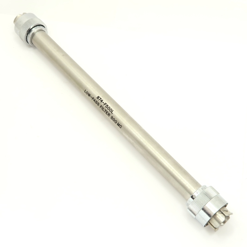Recommended for use in immittance- or voltage-measuring systems to reduce harmonics, and especially in systems that contain nonlinear elements or sections that might resonate at a harmonic. Also useful in slotted-line measurements. Uses Chebyshev-type filters that produce a very steep cutoff characteristic at the expense of passband flatness. Spurious responses in the stopband are very small. 50 OHM impedance, locking GR-874 connector. Sourced from military surplus lots.