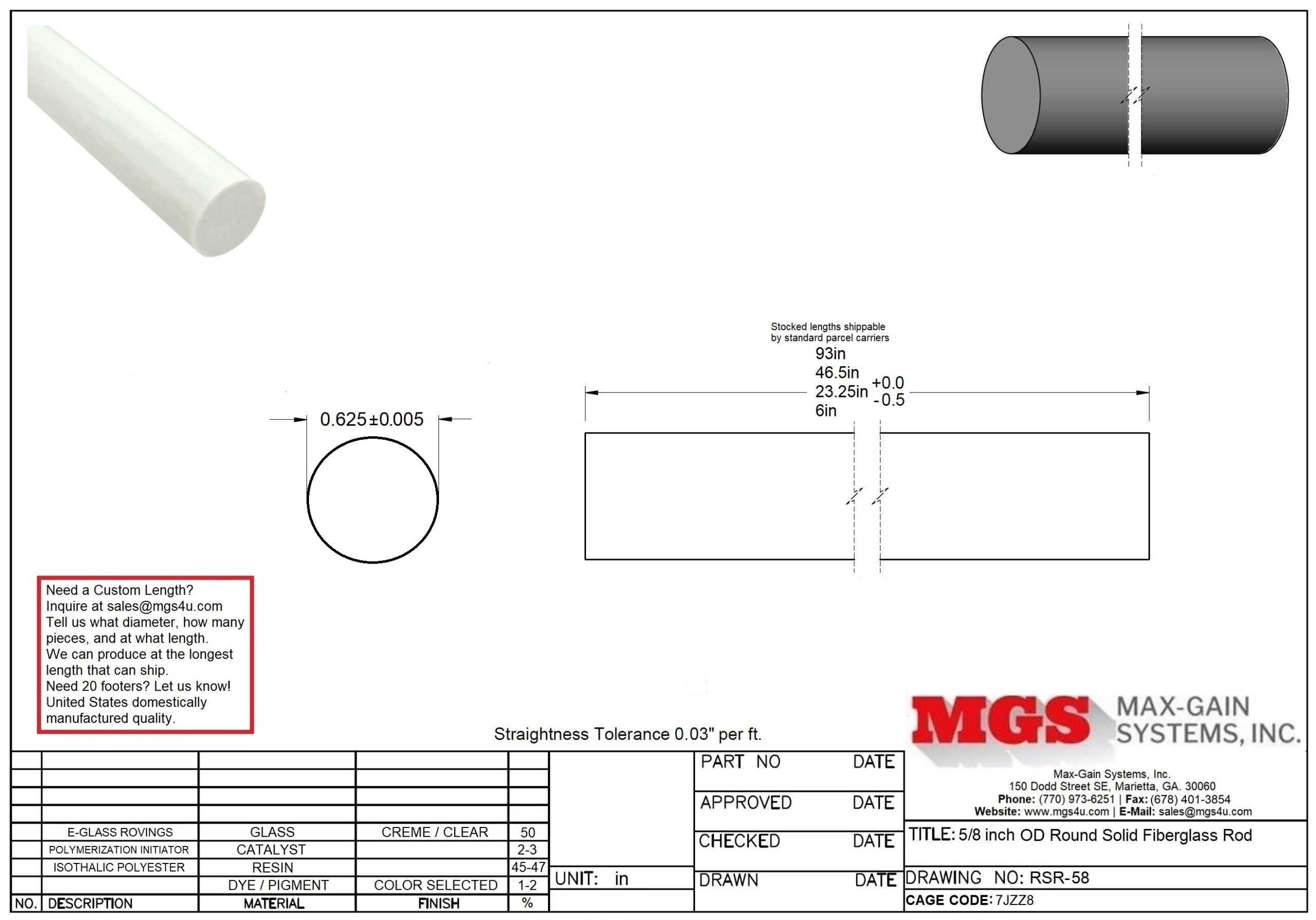 MGS Fiberglass Shapes that are 5/8″ size equivalent: