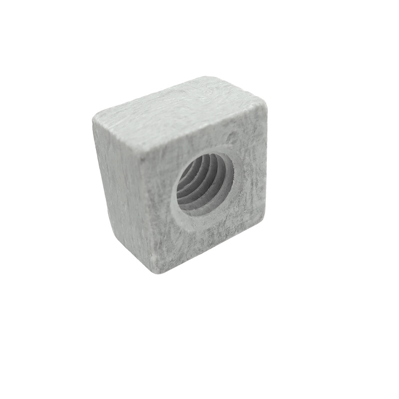 Fiberglass Square Nuts are designed to be used on corresponding sizes of threaded rods, bolts, and screws. Our Square fiberglass nuts are made from many layers of random directional fiberglass mat and vinylester resin with UV inhibitor. Strong thread, high thread shear strength, light weight and anti-corrosive properties makes them widely usable in many applications where steel hardware cannot be used or weight is a key factor.