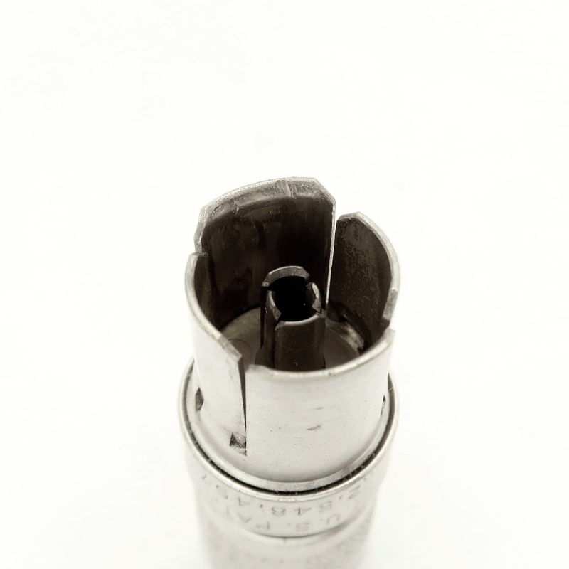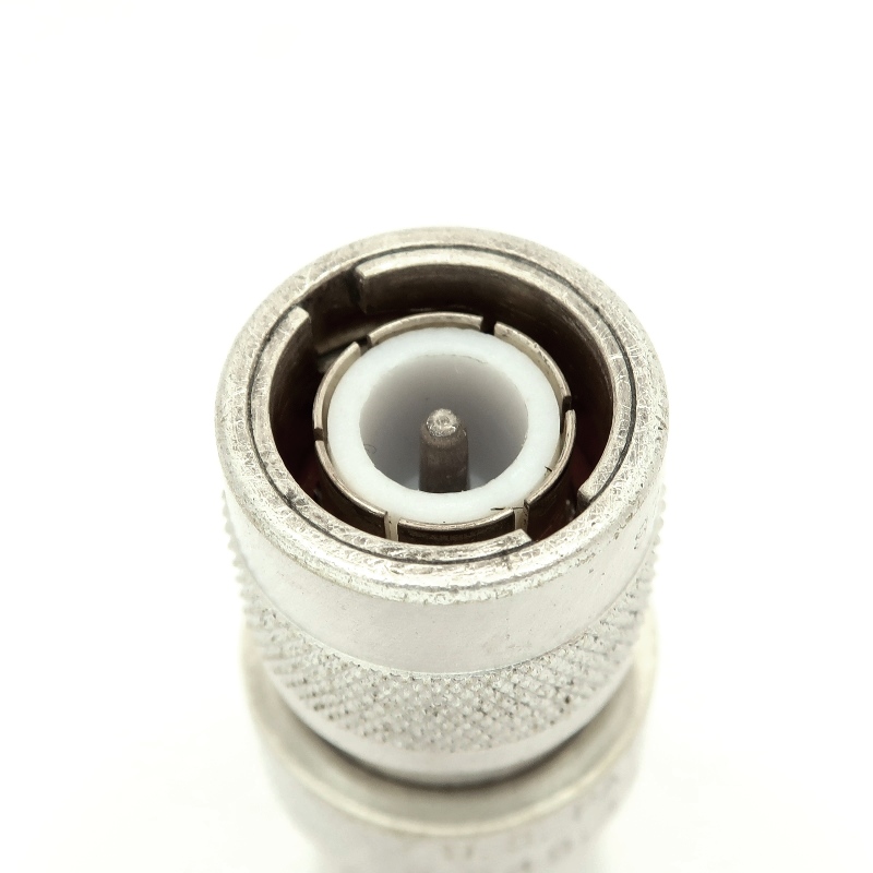 This 50 Ohm GR874 adapter is designed by the General Radio Company and precision manufactured for military and laboratory use. The GR874 connection type is sexless in that all GR874 connectors and adapters will mate with one another. Used in applications up to ~8 GHz. The Type C male side accepts the Type C female tabs or “bayonets” for quick and reliable connections and disconnections – very similar to a BNC connection, but at the same size and attributes as a Type N connection.
