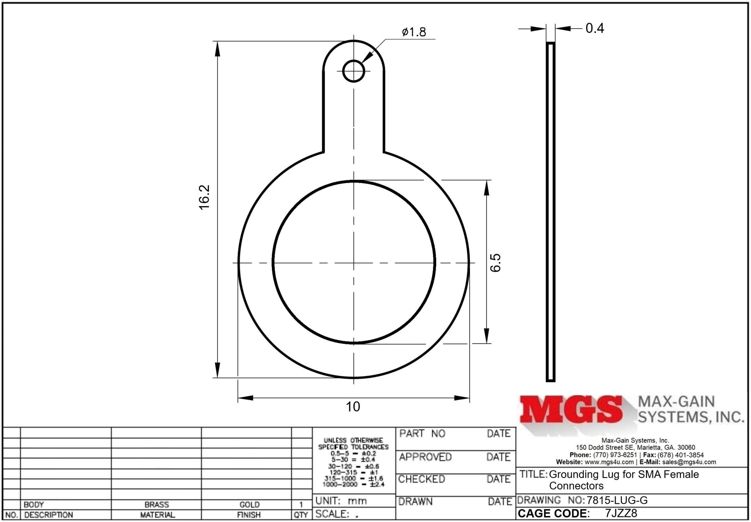 This Grounding Lug for SMA Female Connectors is one of several thousand RF products available from Max-Gain Systems, Inc.