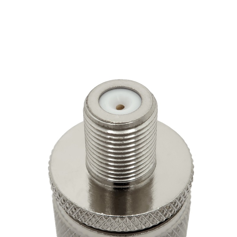 This adapter is made from a Solid Brass body that is precision machined and plated with Nickel for superior performance and value. This Type N male to Type F female adapter has a Delrin dielectric and a gold plated brass center pin. The Type N male side contains a gasket, for shock- / vibration- resistant and waterproof connections. The Type F female side provides threads that ensure a perfect connection allowing use at higher frequencies.