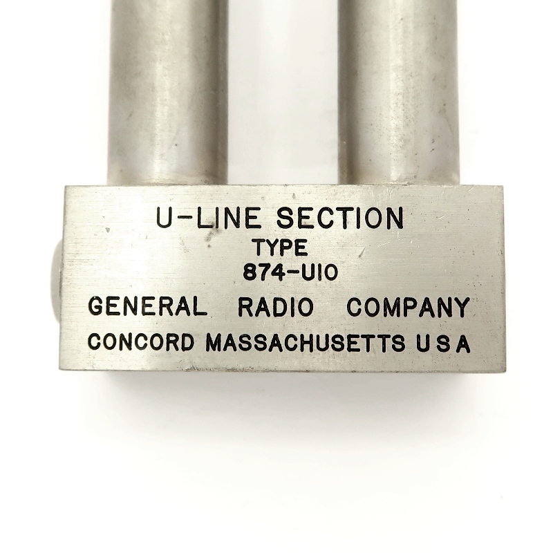 A coaxial line section in the shape of a U that is useful in many coaxial setups. 50 OHM impedance, non-locking GR-874 connectors. Sourced from military surplus lots.